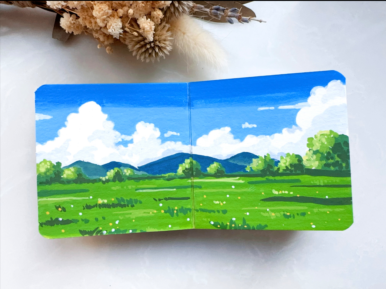 ShowBL > 哇!这画风太治愈了吧!1分钟教会你画风景,丙烯马克笔风景小画,迷你豆豆本