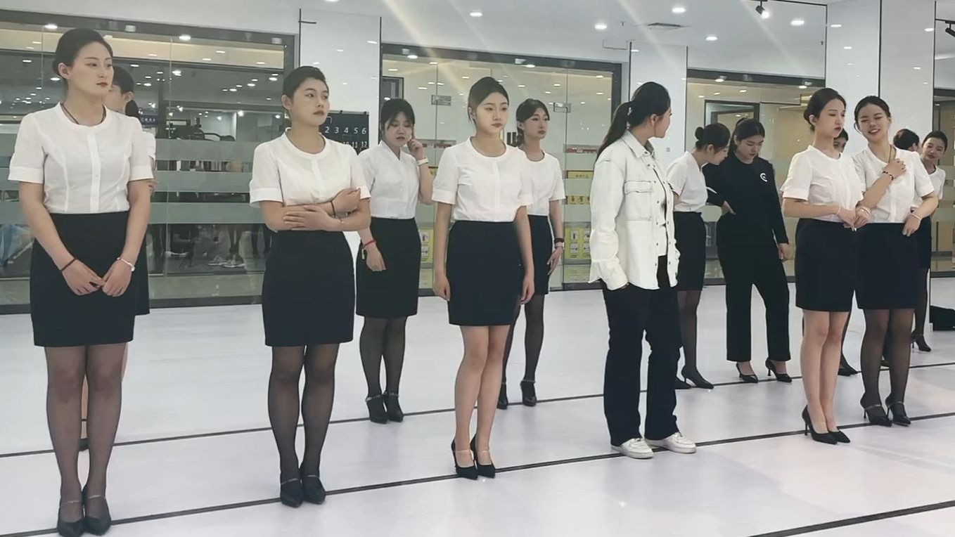 航服学生日常训练 制服高跟鞋 面对面站立