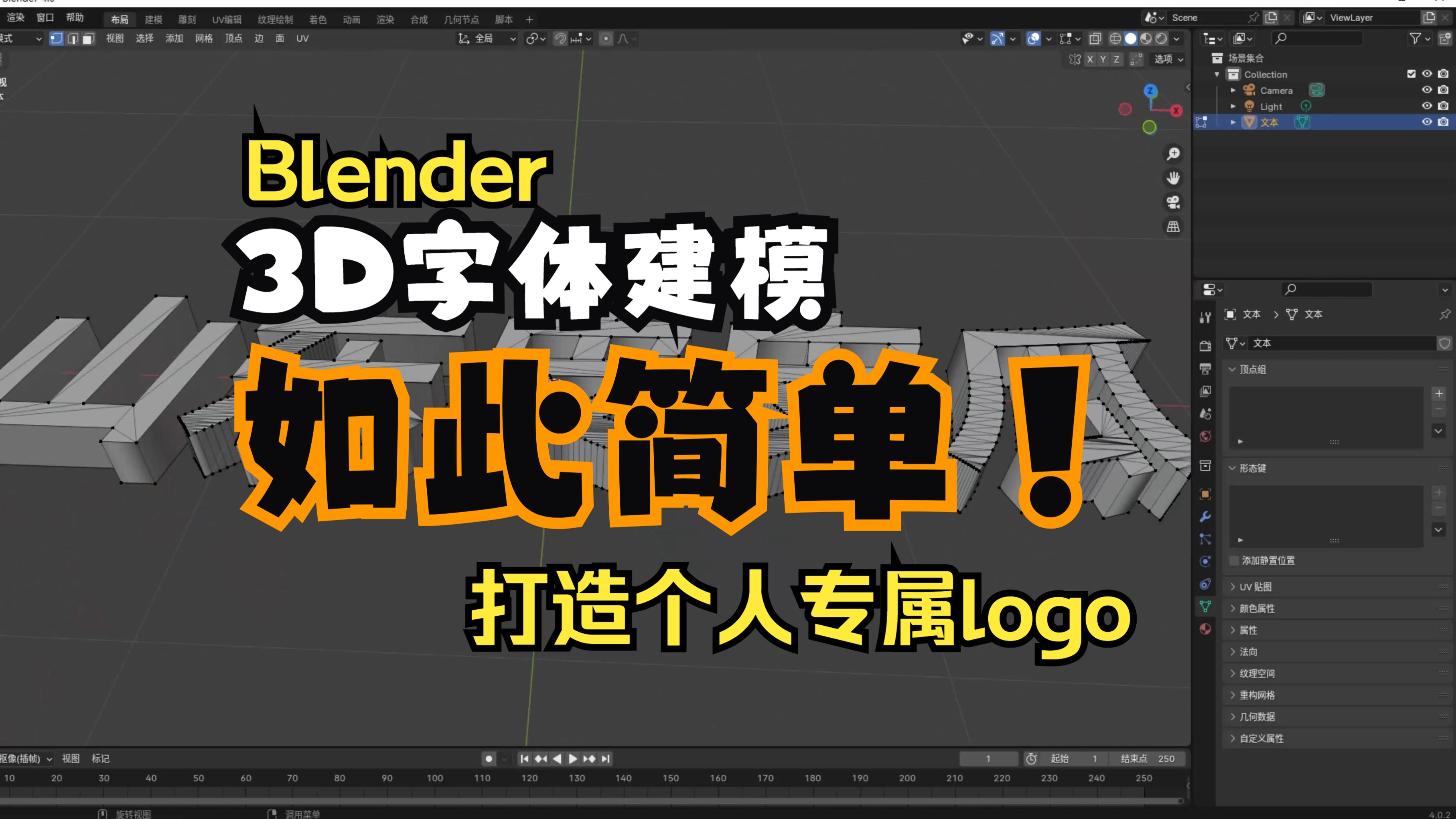 一个视频教你建3D文本模型 Blender建模