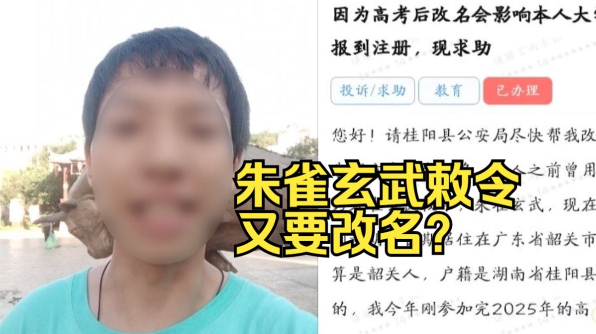 “朱雀玄武敕令”又要改名?这已经是其本人近13个月以来第11次提交更名申请。今天他提出的理由是担心前后名字不一样会导致大学录取通知书无法签收,当地公安局以扰乱公共秩...